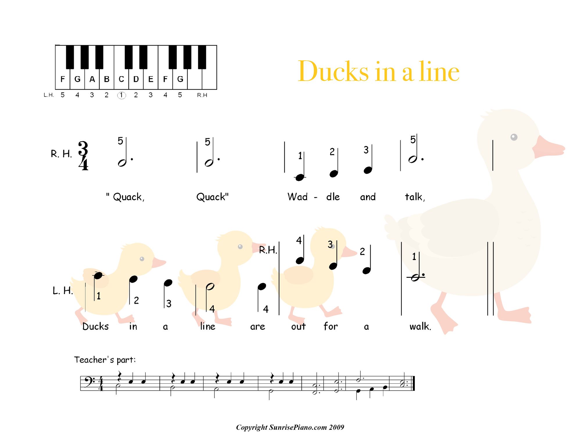 Ducks in a Line - Primer Piano Sheet Music