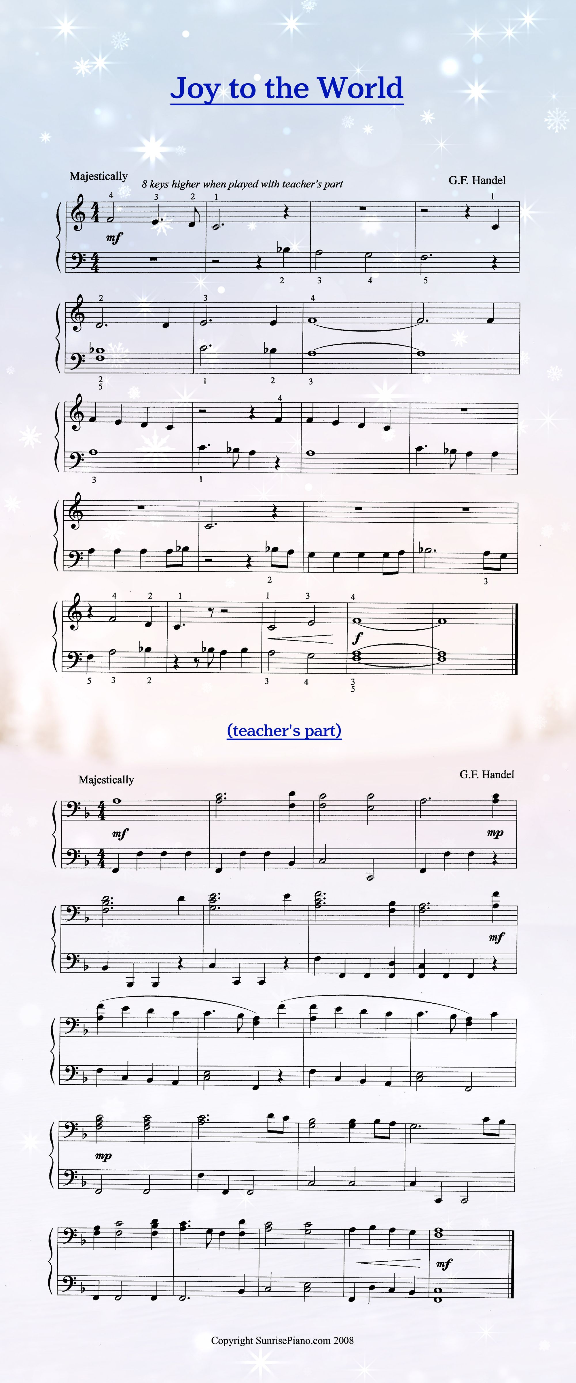 An easy Christmas carol in Middle C position, this piece makes a good performance number for a first Christmas recital, especially when played with the teacher's part.