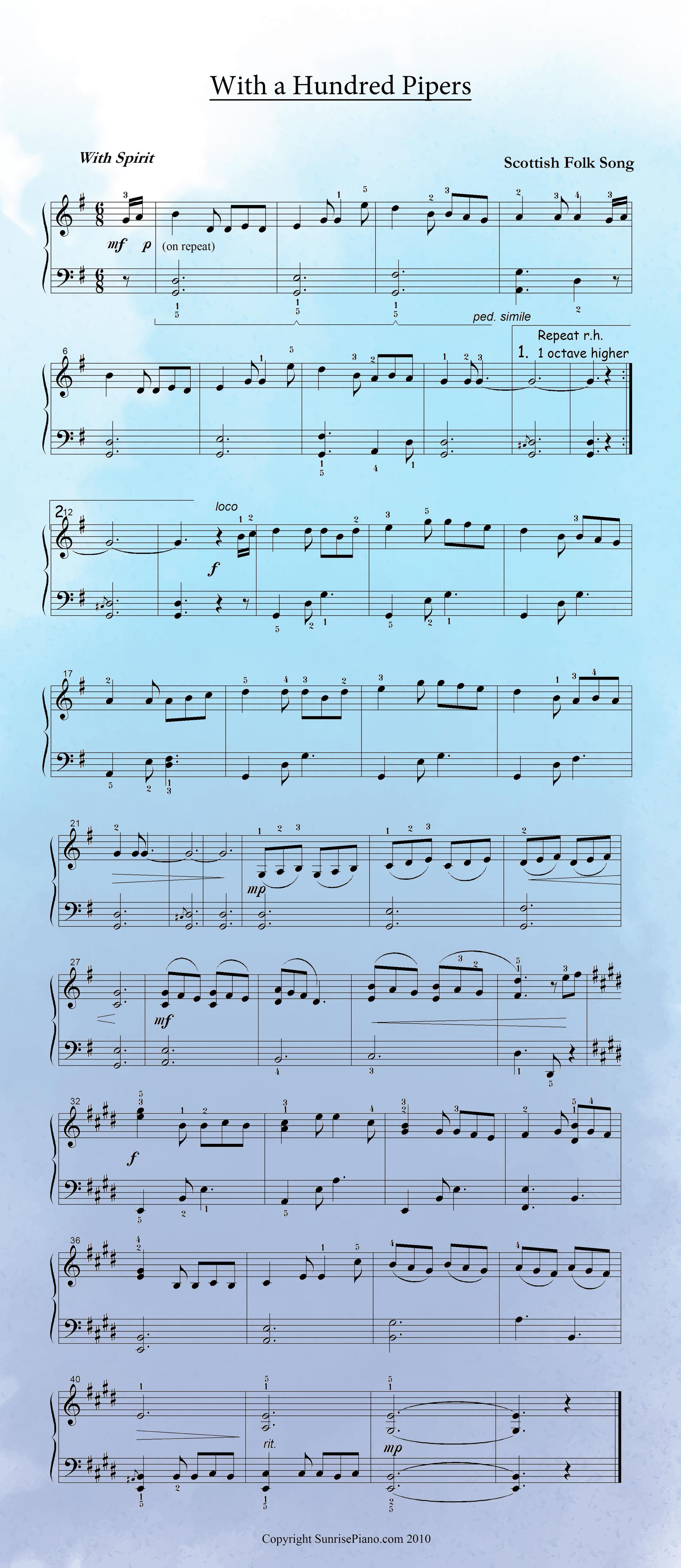 With a Hundred Pipers - Intermediate Piano Sheet Music